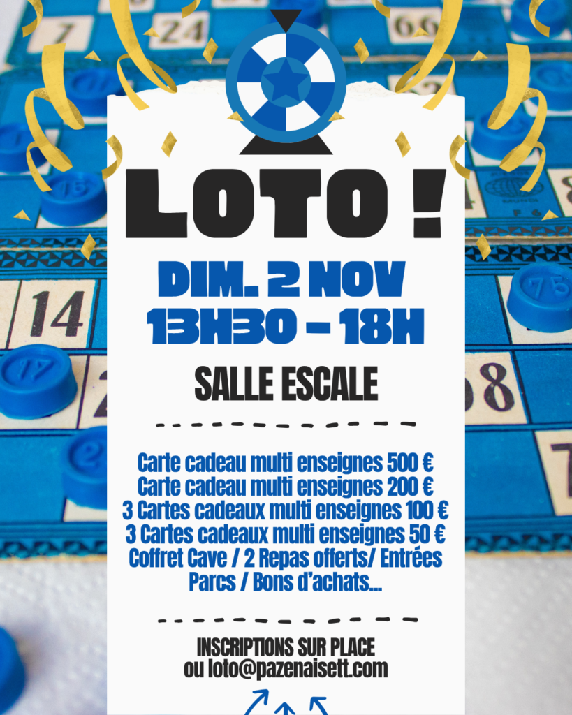 Inscription par mail : loto@pazenaisett.com ou sur place.